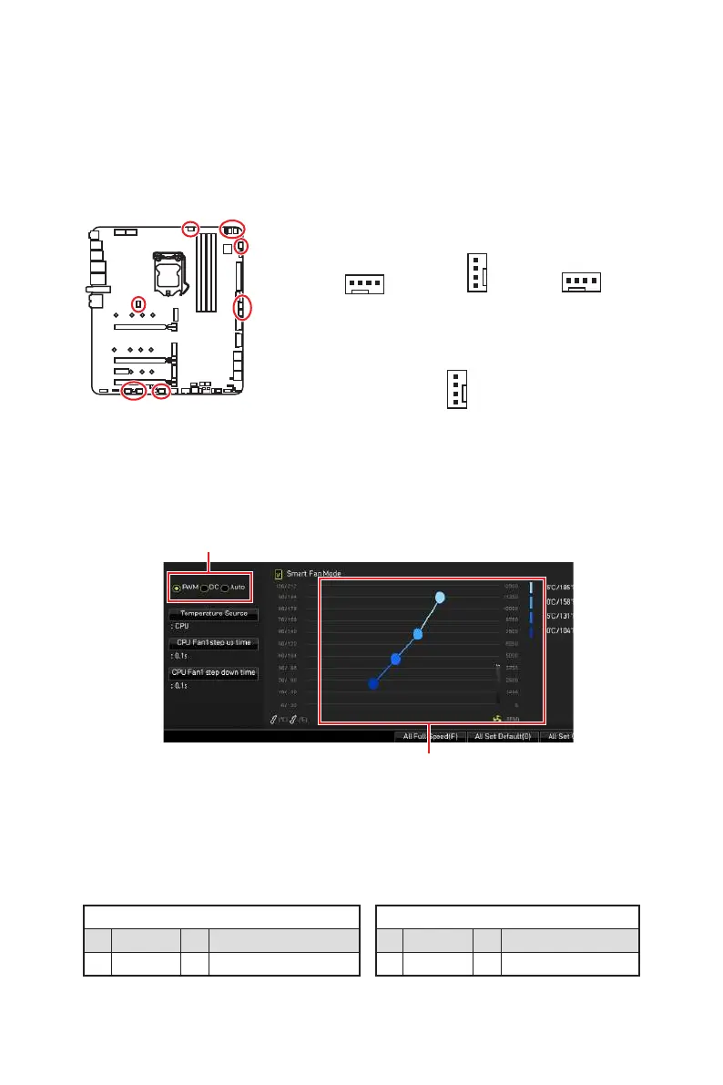 CPU_FAN1, PUMP_FAN1, SYS_FAN1~8: Fan Connectors