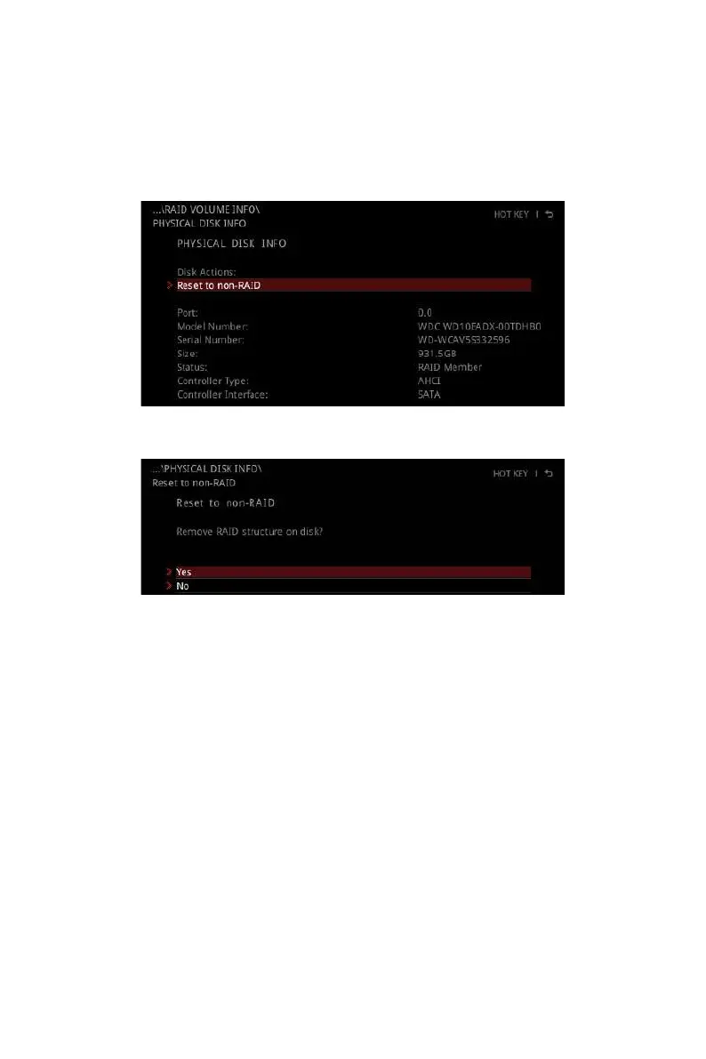 4. Select Reset to non-RAID item and press Enter to delete the RAID volume and