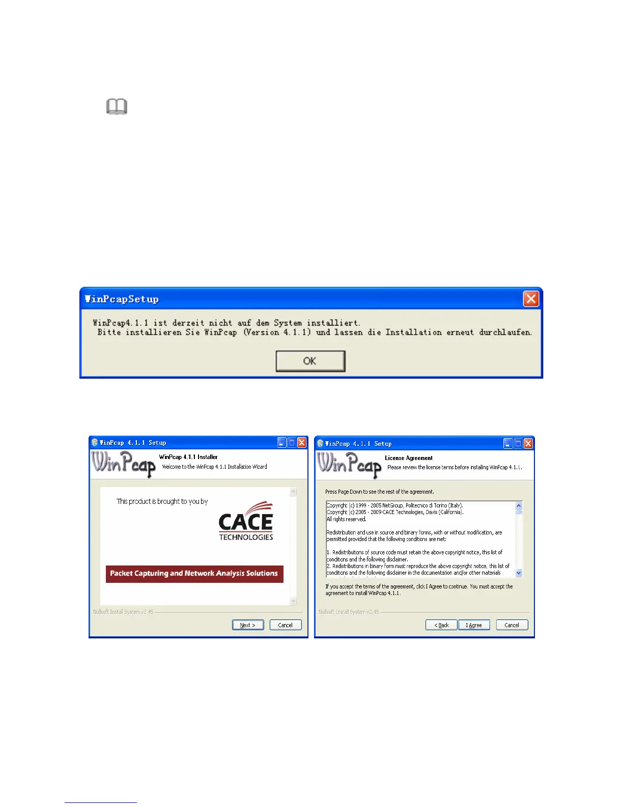 angezeigt, wenn Sie versuchen, WinPcap zu installieren. Siehe folgende Abb.