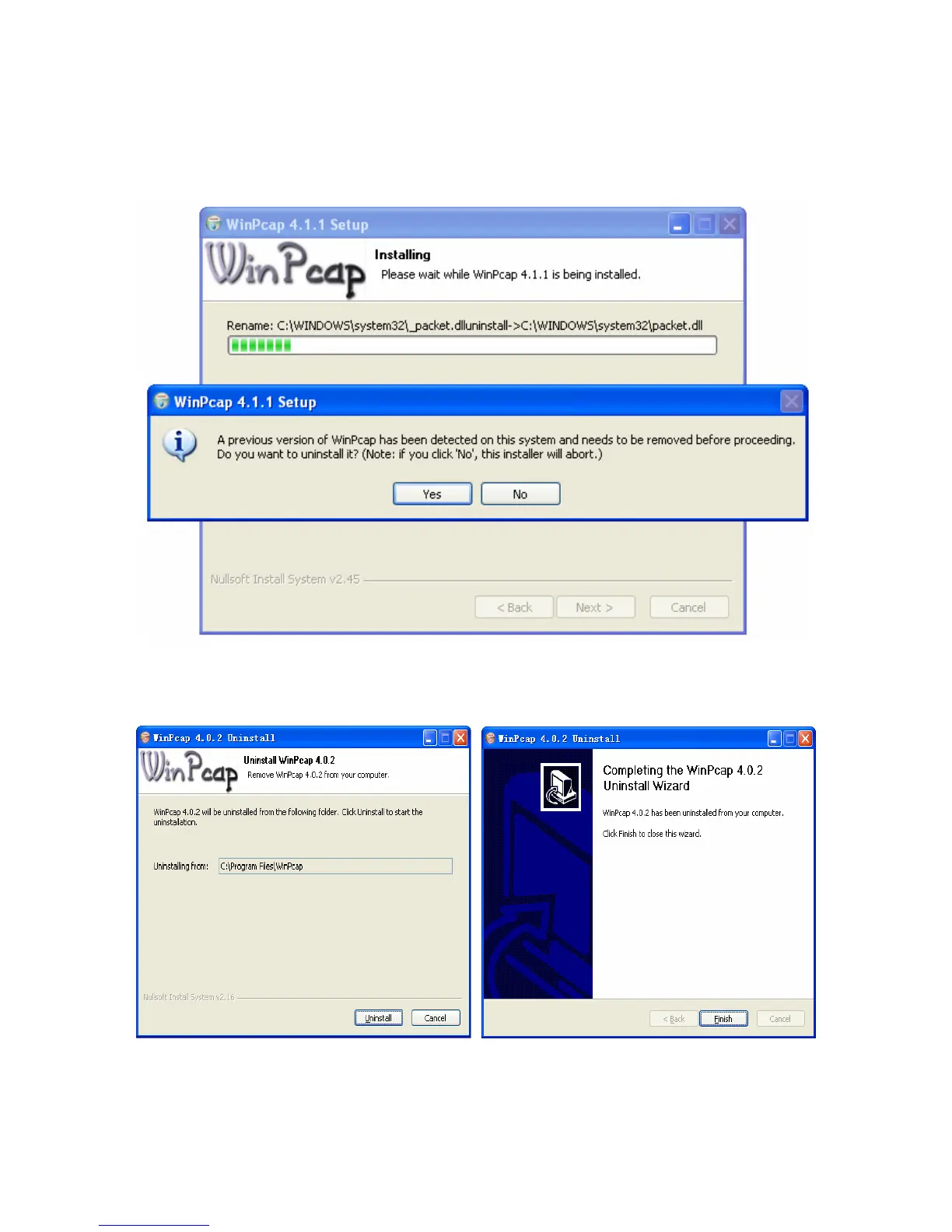 Abb. 11 Deinstallation von WinPcap einer früheren Version