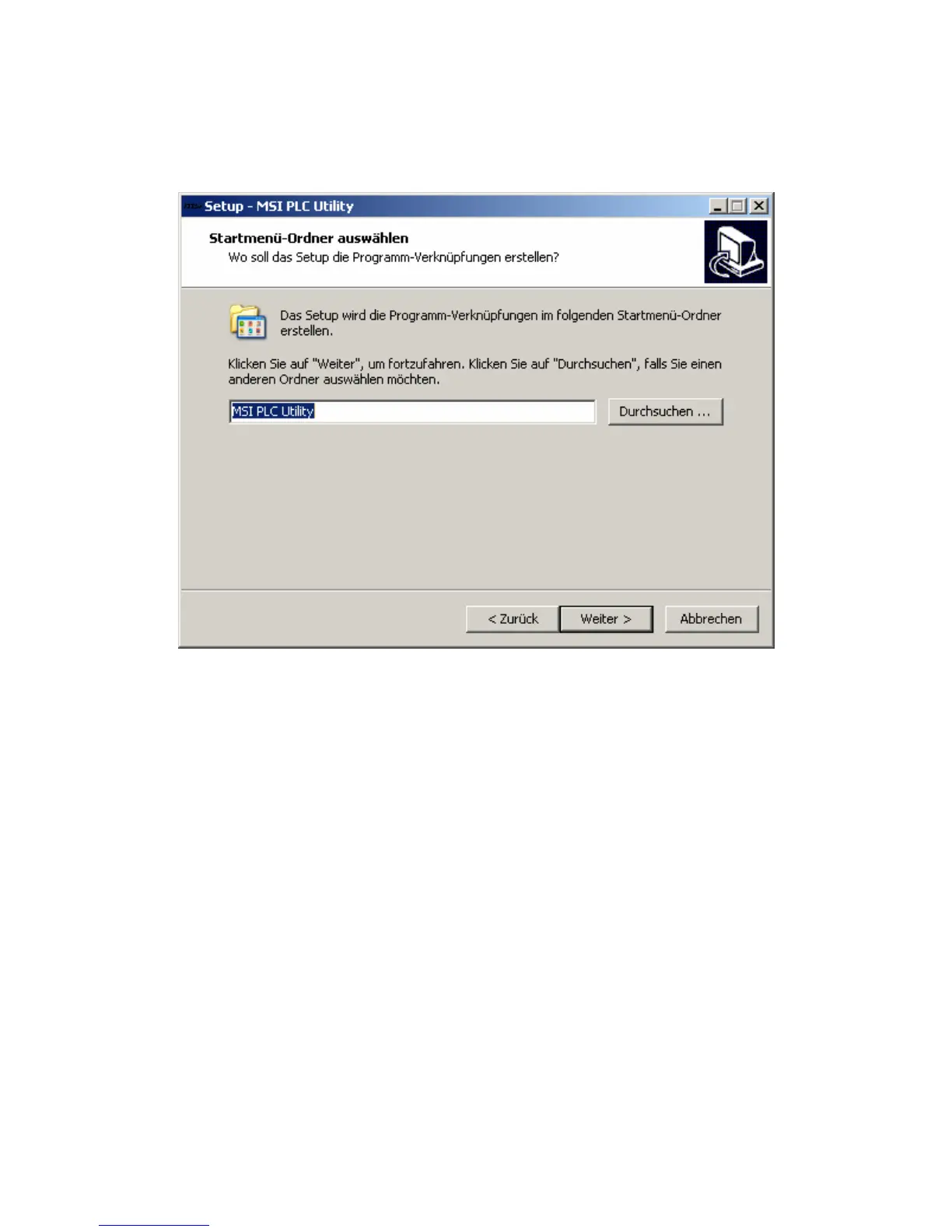 Abb. 15 Installationsassistent – Startmenü-Ordner wählen