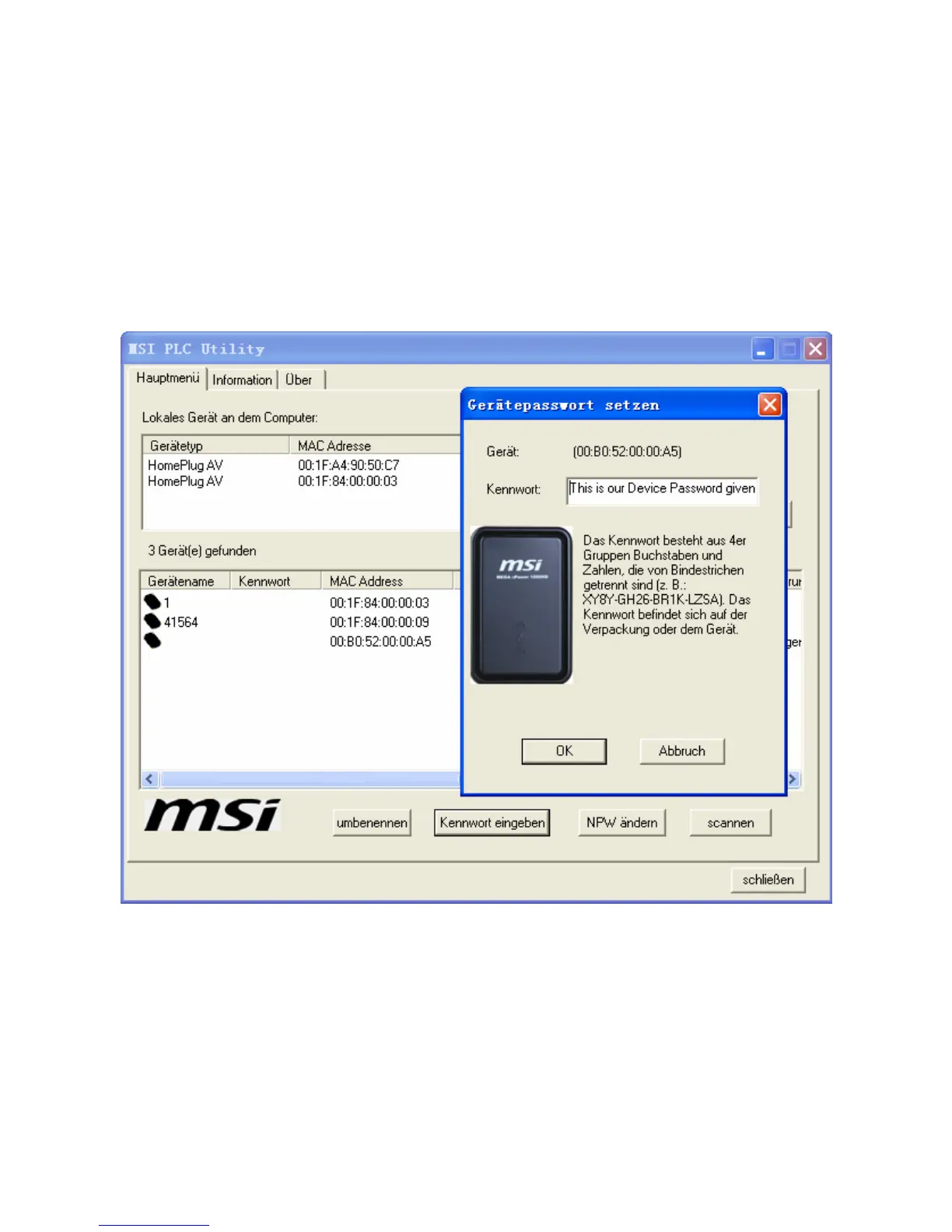 Der obere Anzeigenbereich zeigt die MAC Adresse des Geräts an. Wenn die