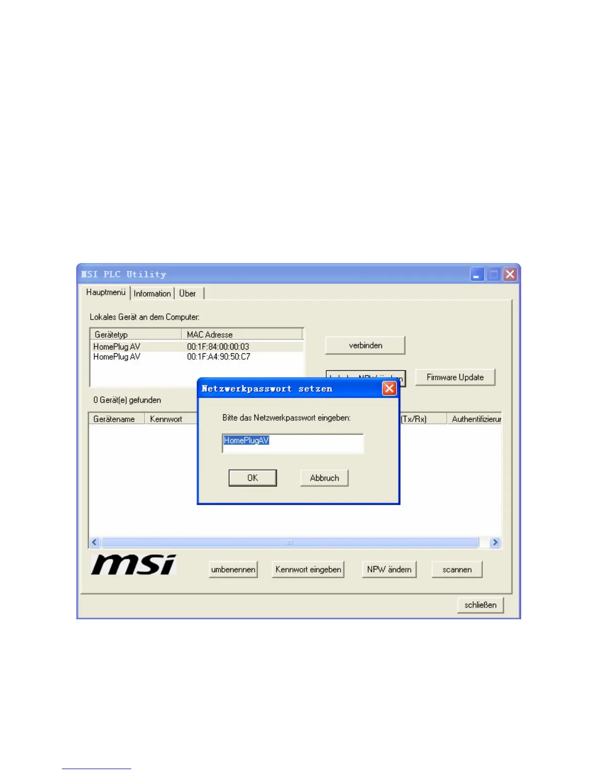 NPW auf HomePlugAV zu ändern Wenn Sie z. B. 1 (00:1F:84:00:00:03)