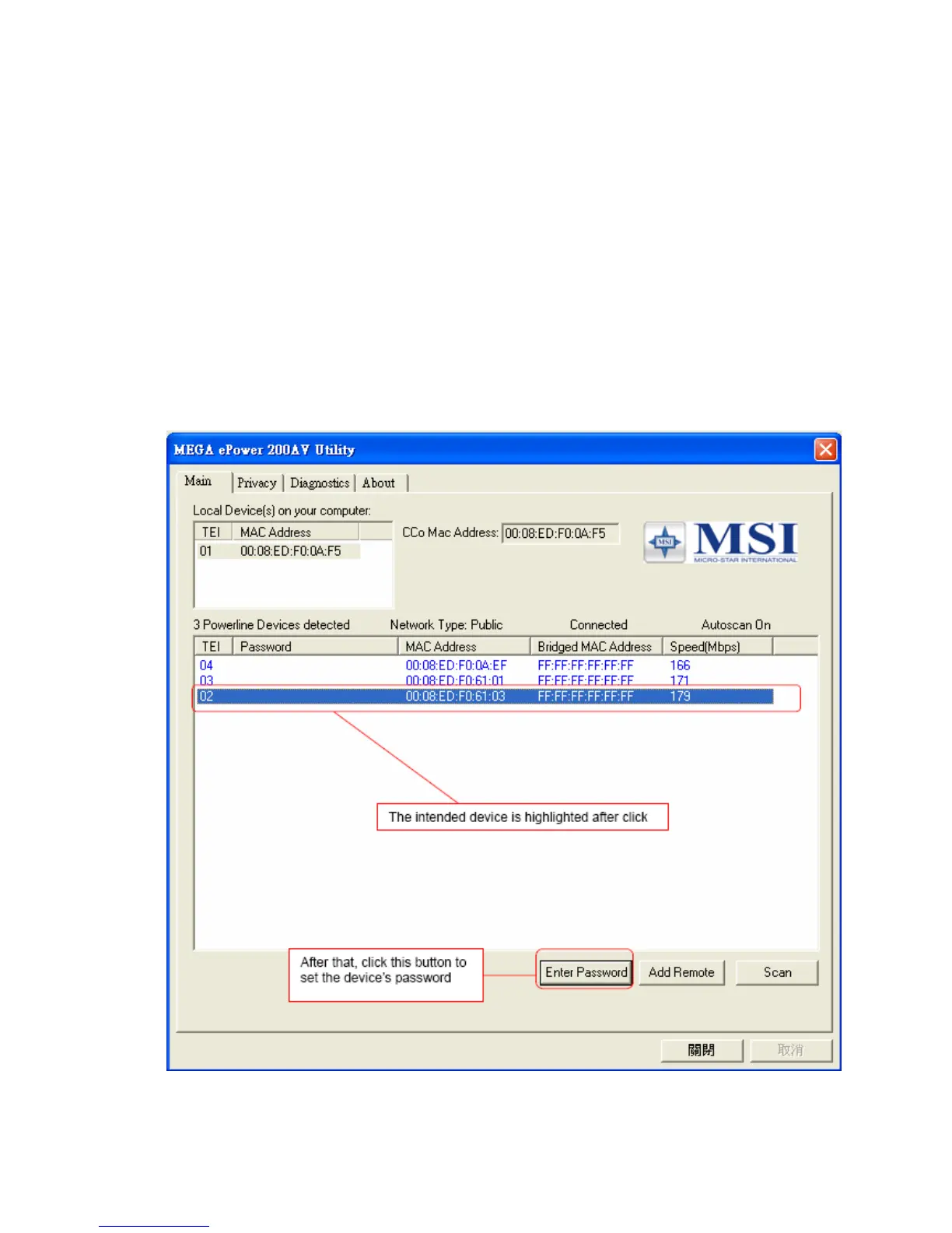up(Figure 6). The selected device’s TEI and MAC address are shown in the dialog
