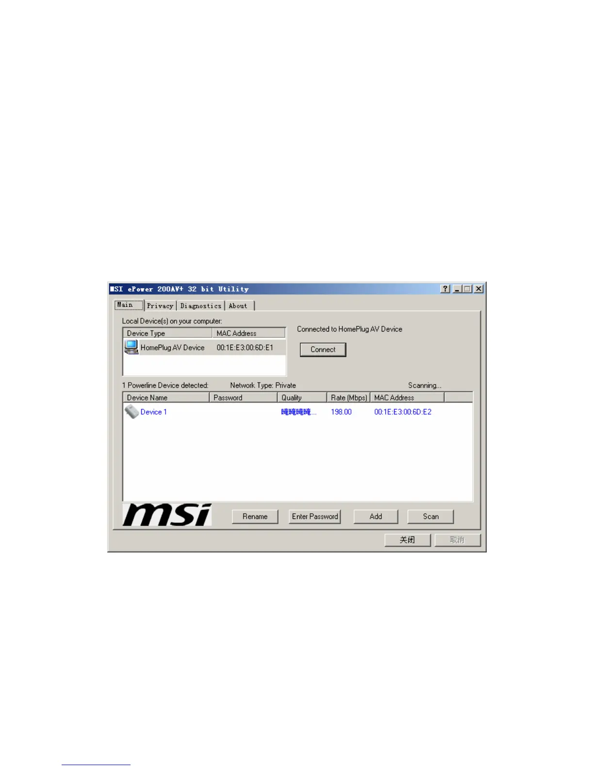 connected to the local device, the utility will automatically scan the power line