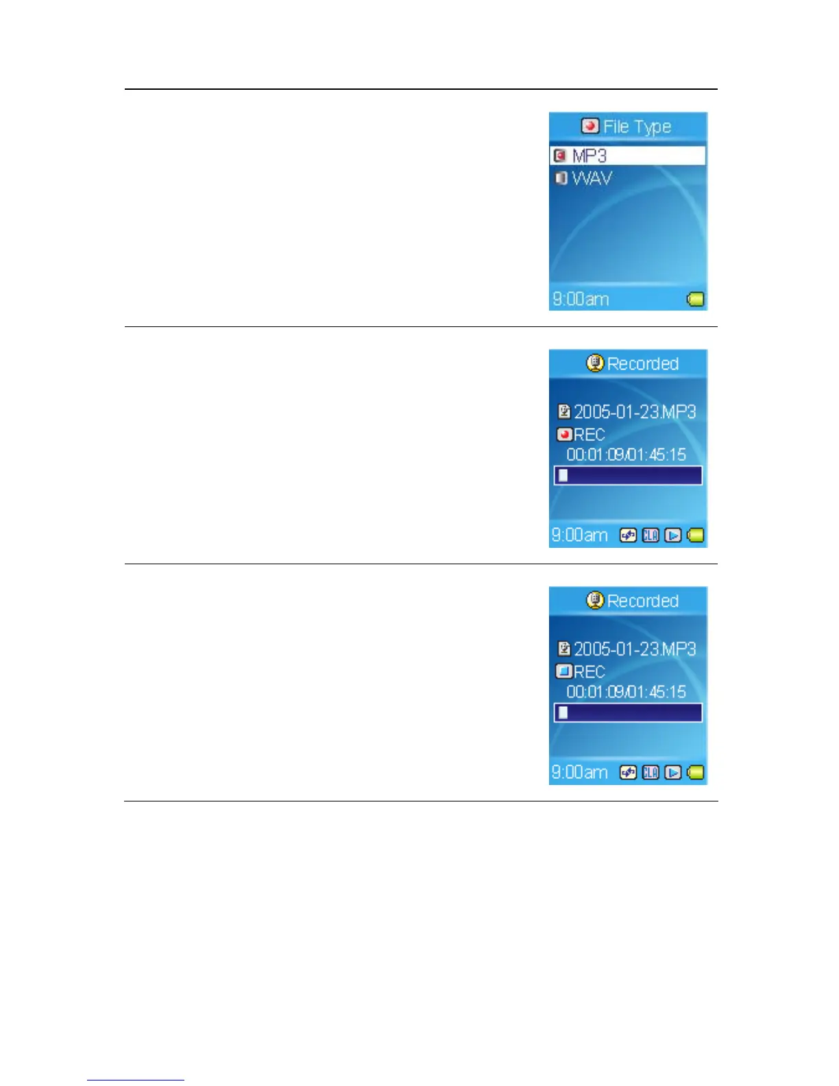 3. On the Display, a recording file should be