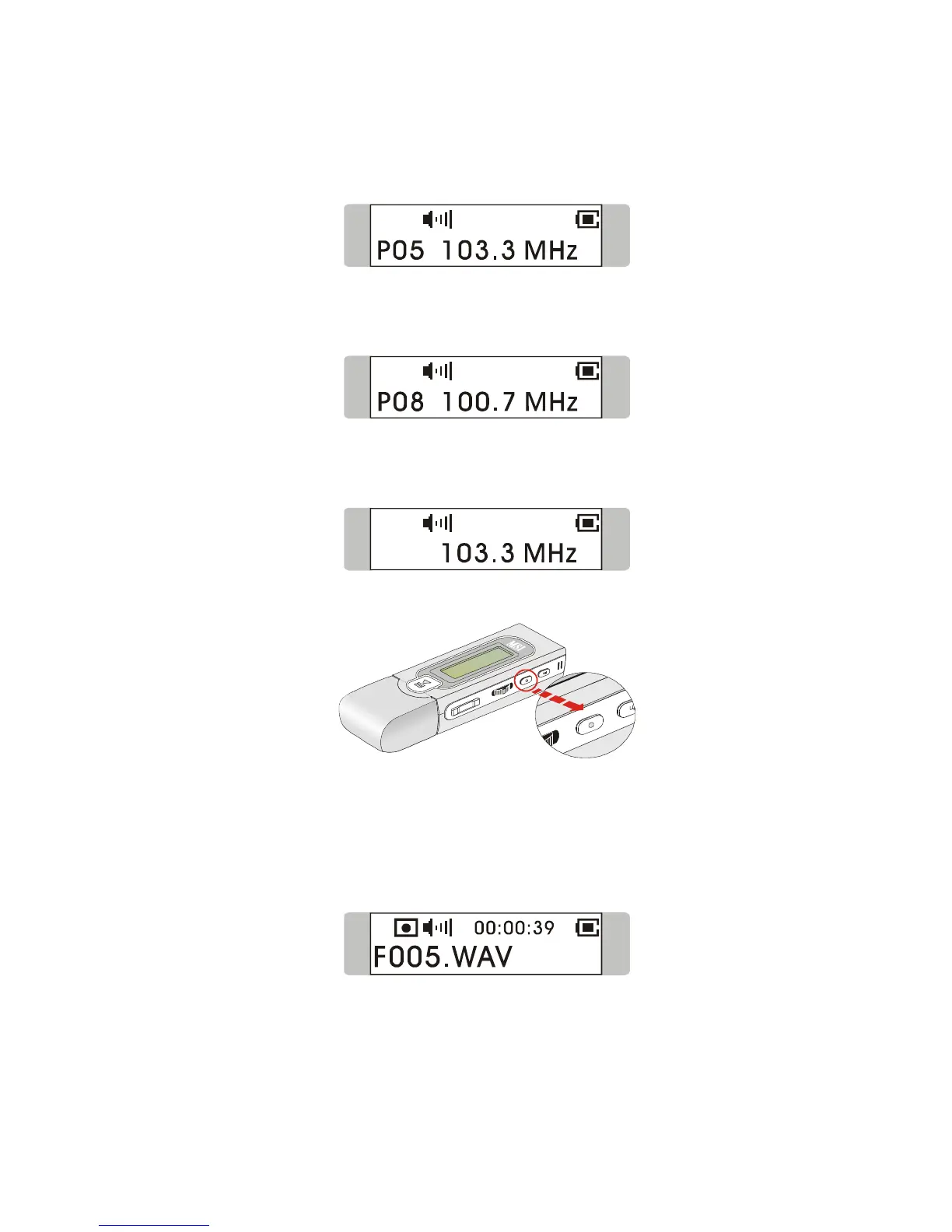 3. Once REC button is pressed, selected station frequency will start being