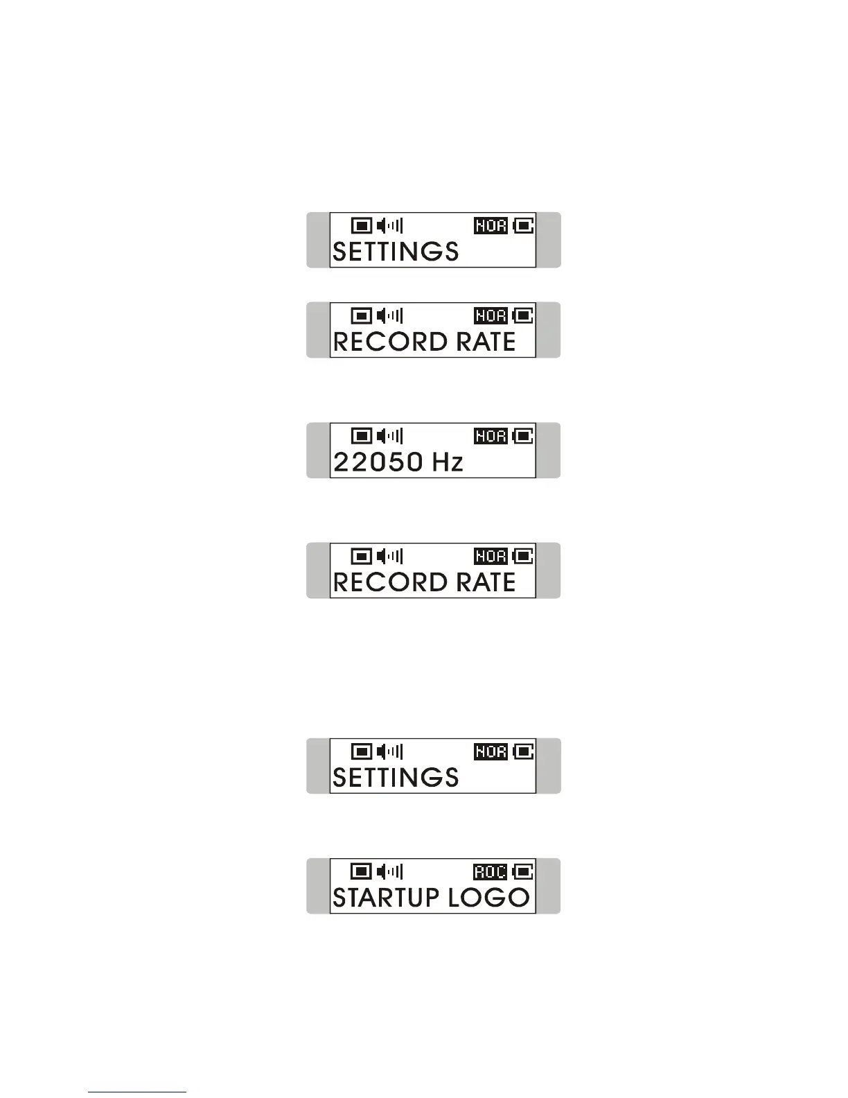 2. Press Menu button again; push it right or left to select RECORD RATE.