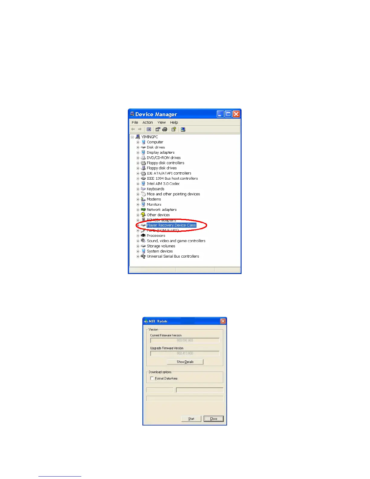 Recovery Device Class] appearing in [Device Manager]. At this time,