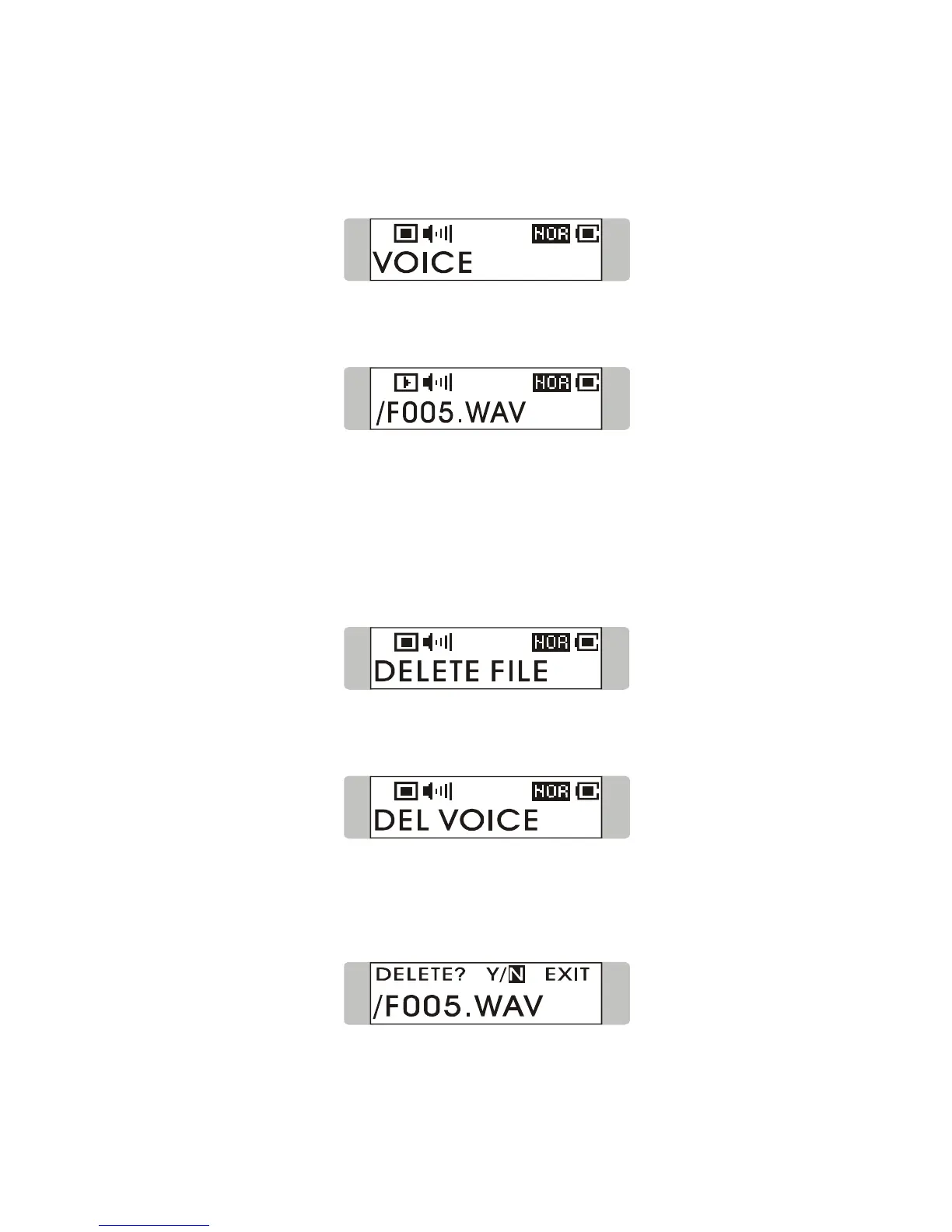 1. To delete a recorded FM voice File, press down Menu button once, and