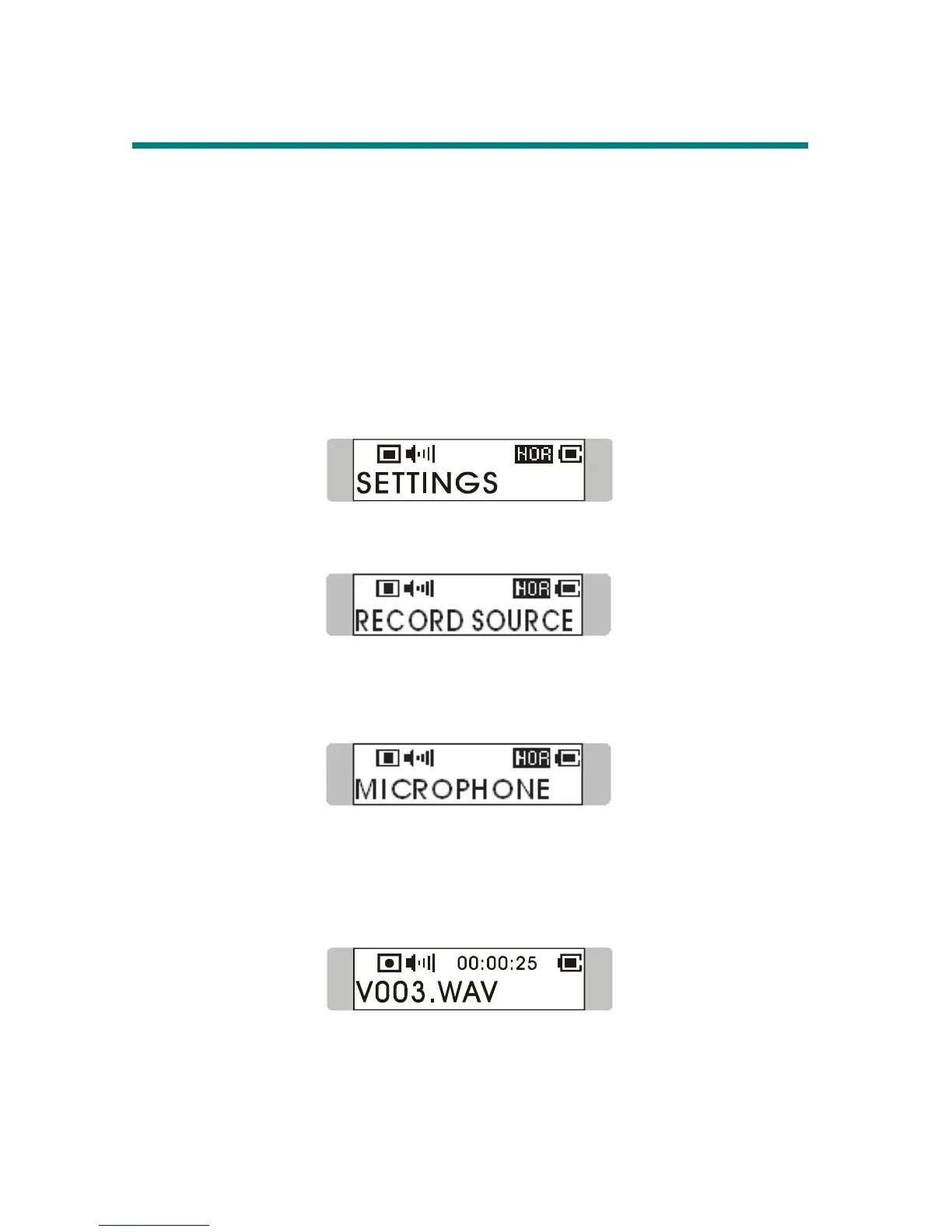 Note: The maximum amount of files stored in MUSIC, VOICE, and LINEIN