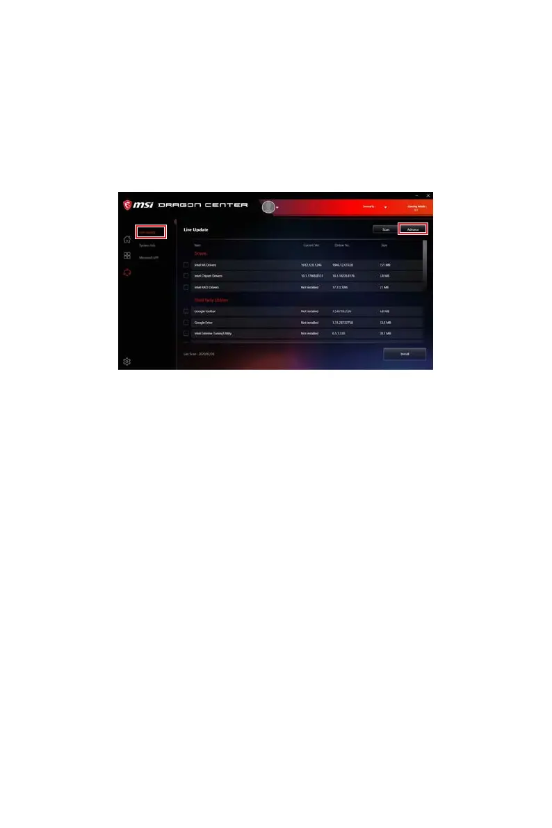 1. Install and launch MSI DRAGON CENTER and go to Support page.