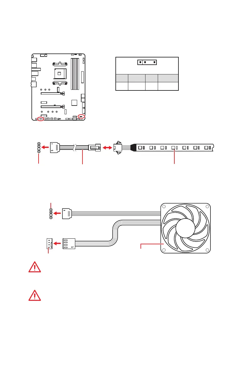 Не подключайте несовместимые с материнской платой светодиодные ленты.