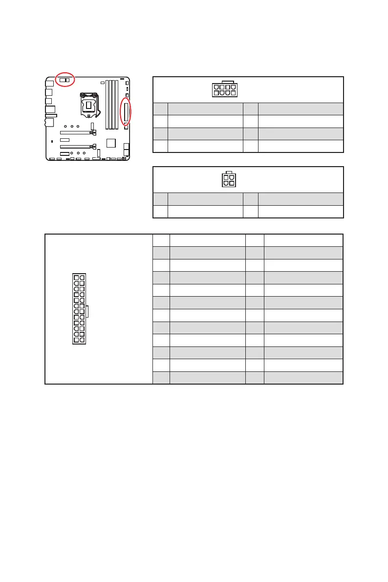 CPU_PWR1~2, ATX_PWR1 : Connecteurs d’alimentation