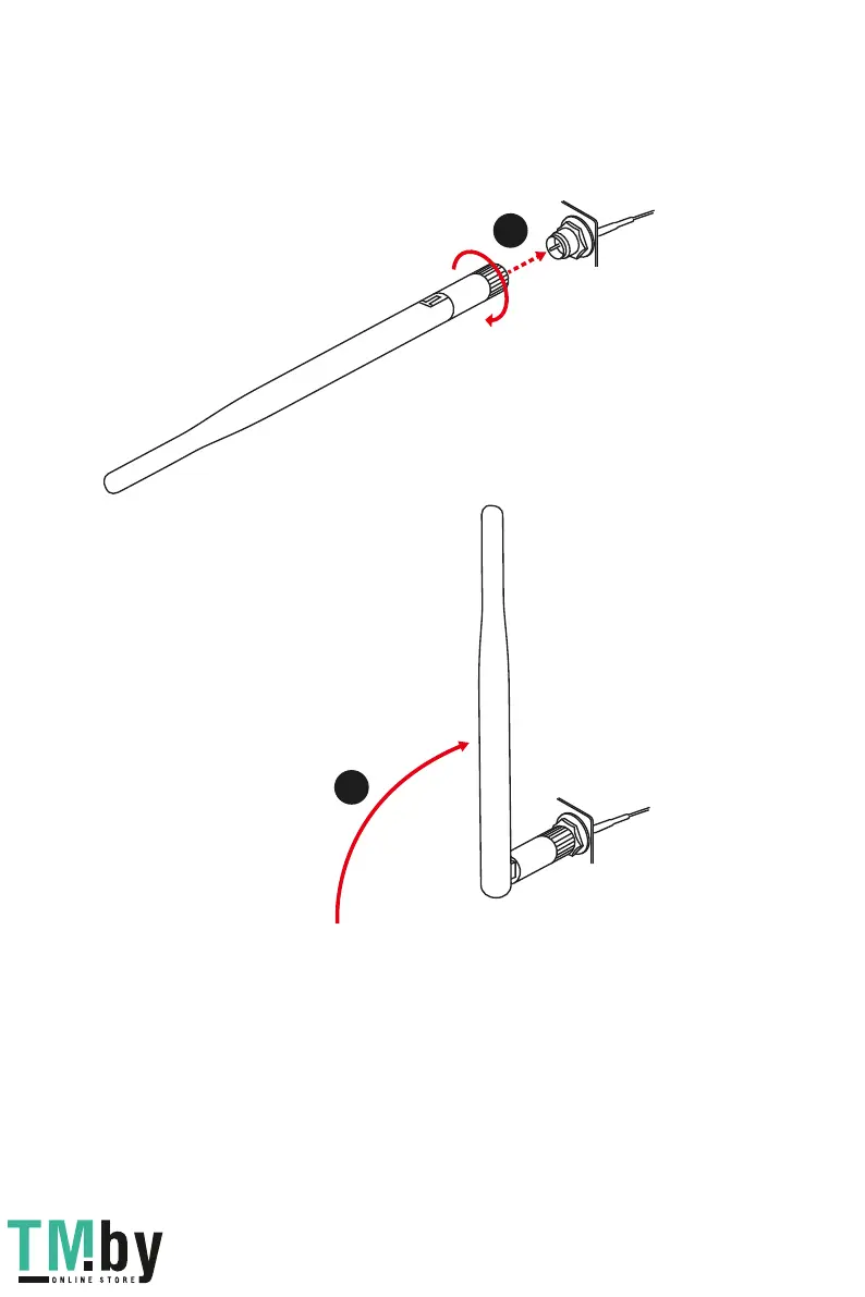 1. Vissez fermement les antennes aux connecteurs dédiés, comme illustré ici.