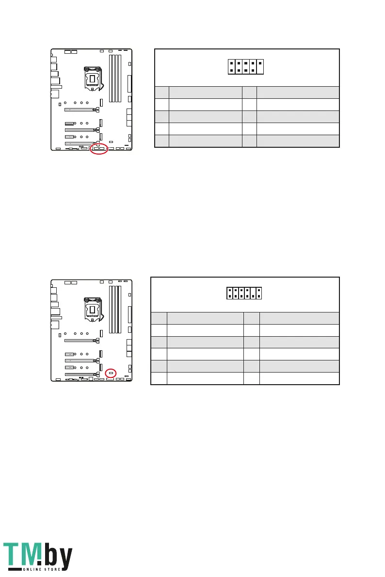 Ces connecteurs vous permettent de relier des ports USB 2.0 sur le panneau avant.