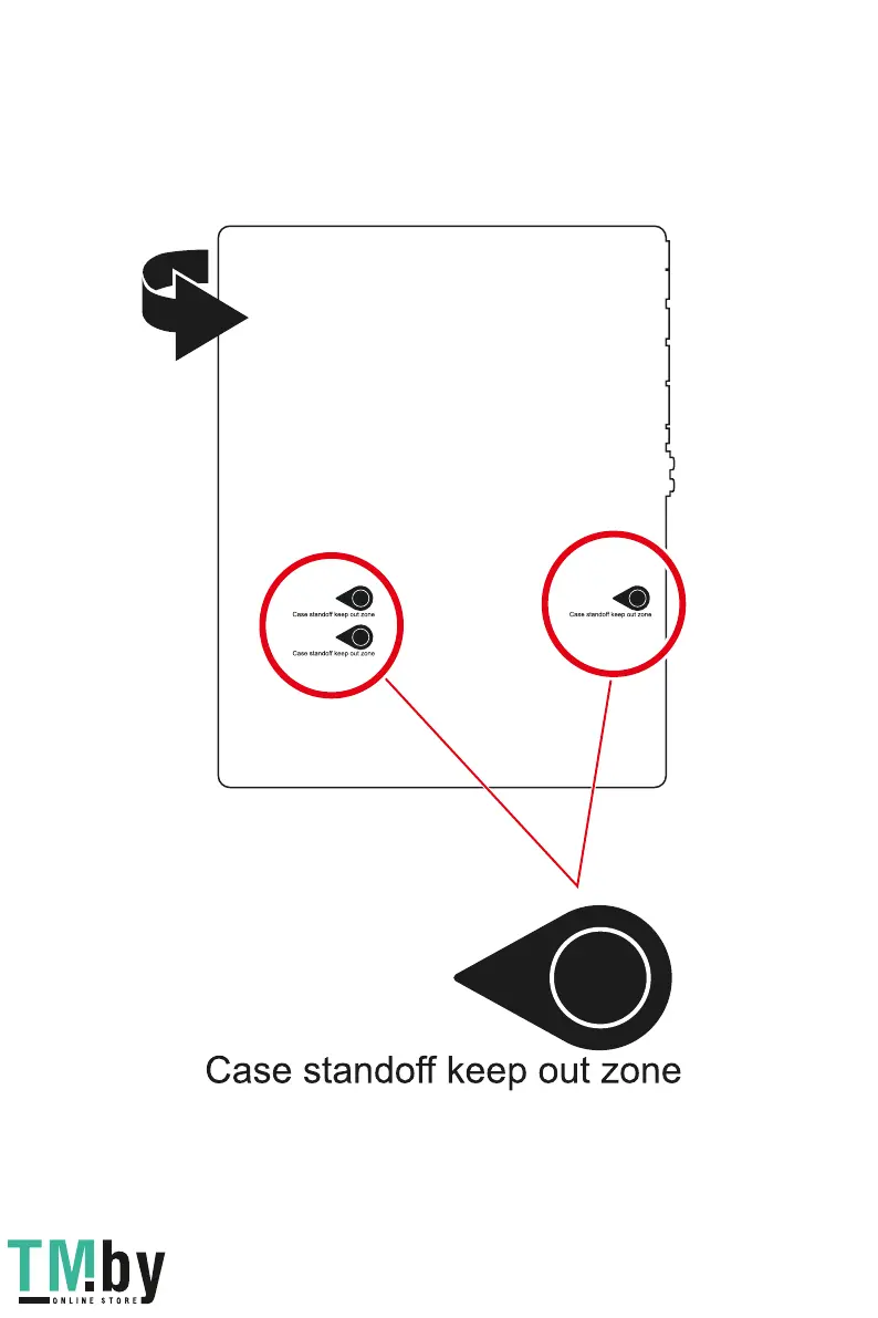 Schilder „Case Standoff Keep Out Zone (Gehäuseabstandszone freihalten )“ auf der