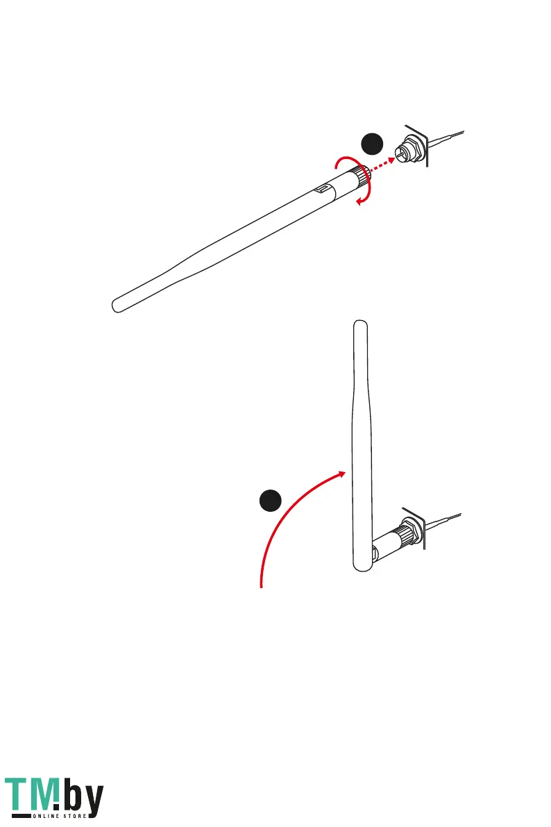 1. Schrauben Sie die Antennen fest an die Antennenanschlüsse, wie gezeigt.