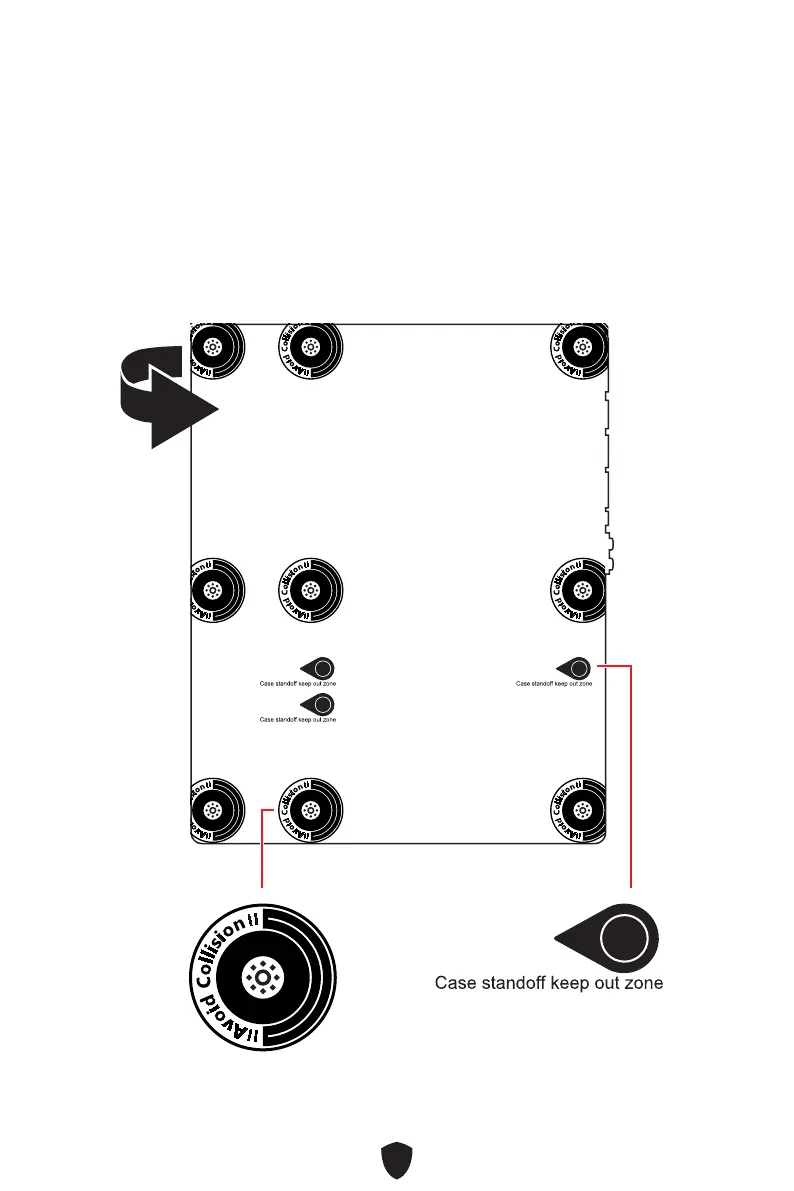 the motherboard circuits and the computer case is prohibited. The Case standoff keep