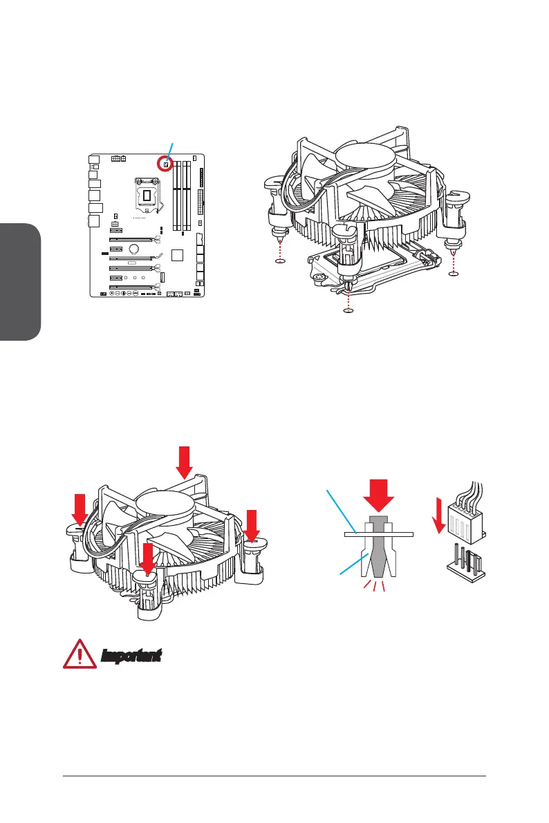 the motherboard. Press the four fasteners down to fasten the heatsink. As each