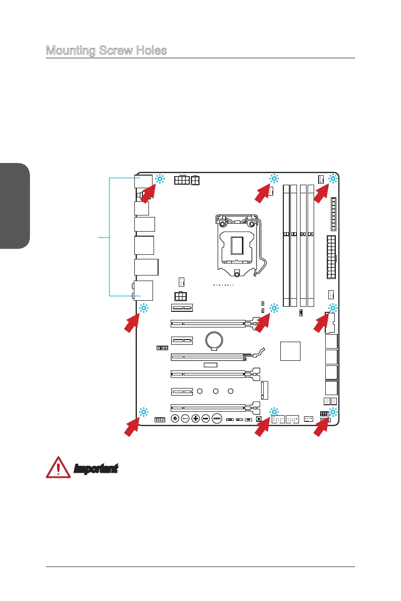 plate’s mounting stands with the screw holes on the motherboard and secure the