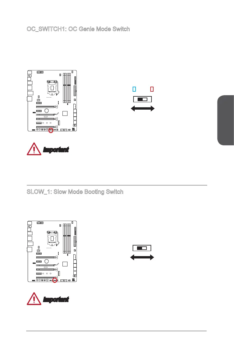This swtich provides two overclocking modes (Gear 1 and Gear 2) for OC Genie