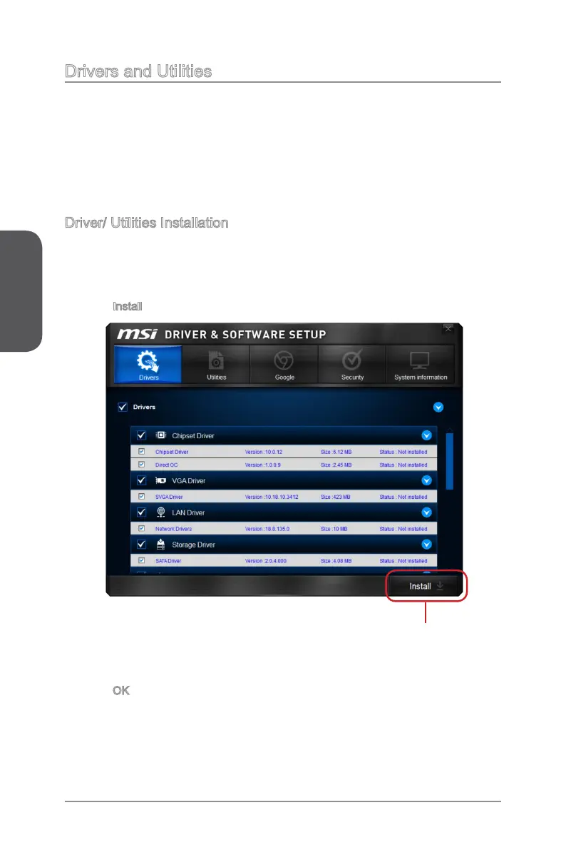 1. Insert MSI Driver Disc into the optical drive. The installer will automatically appear