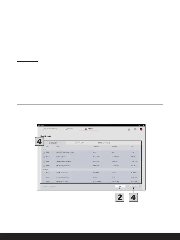 1. Connect to Internet, and go to MSI Center [Support > Live Update].