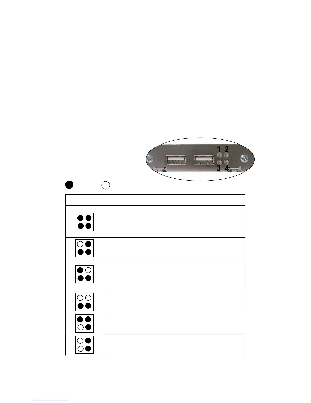 LEDs provide up to 16 combinations of signals to debug the system. The 4