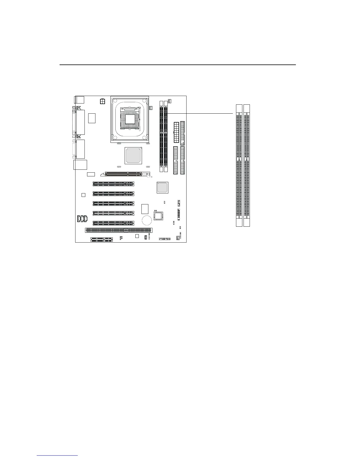 The mainboard provides two 184-pin DDR DIMM slots and supports a