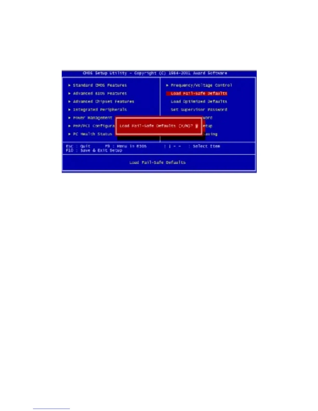 When you select Load BIOS Setup Defaults, a message as below appears: