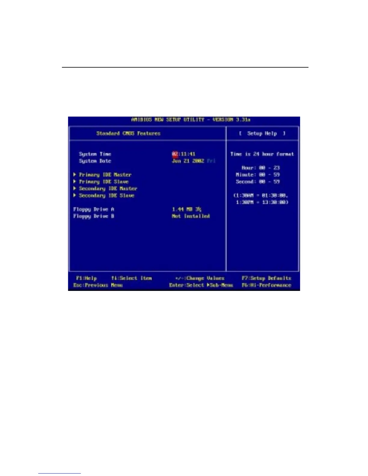 The items inside STANDARD CMOS SETUP menu are divided into 9 catego-