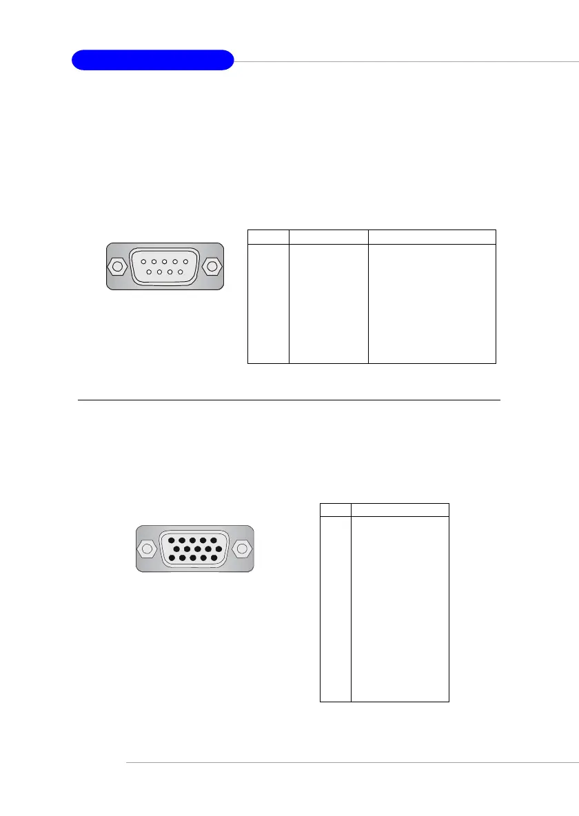 The mainboard offers one 9-pin male DIN connector as the serial port.