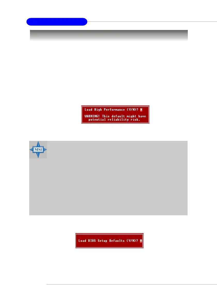 When you select Load BIOS Setup Defaults, a message as below appears: