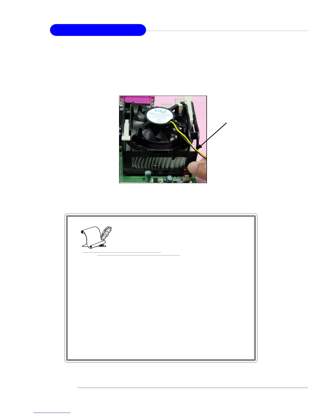 Connect the fan power cable from the mounted fan to the 3-pin fan power connector