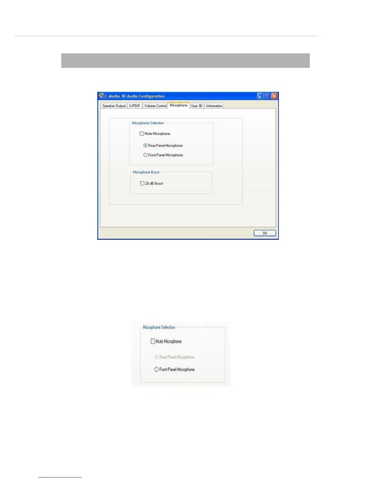 Click on the Microphone tab and the following screen appears.