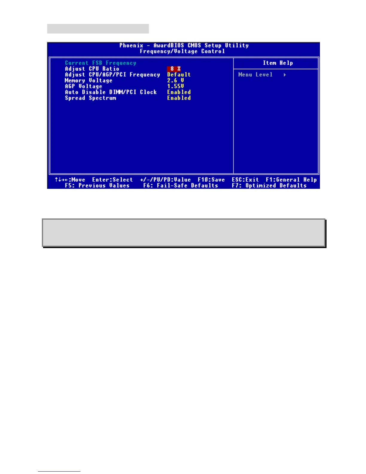 The items in this submenu includes some important settings of CPU, AGP, DRAM and