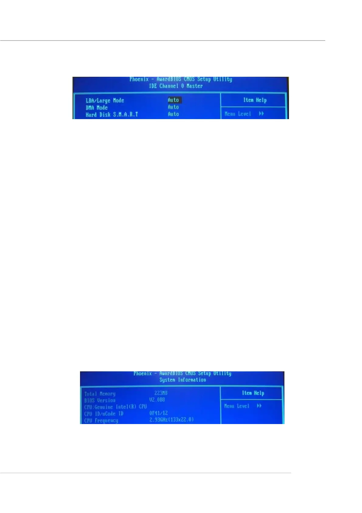 Press <Enter> to for the sub-menu of each item:
