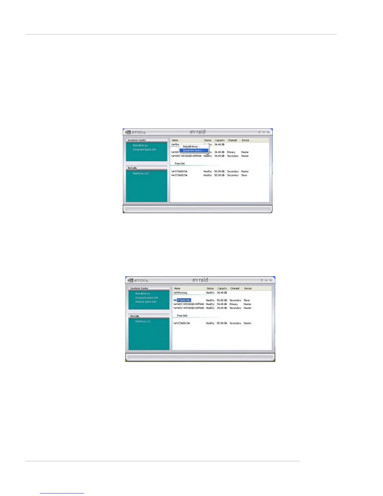 or the array drives as shown in the figure below. Then click Designate Spare to