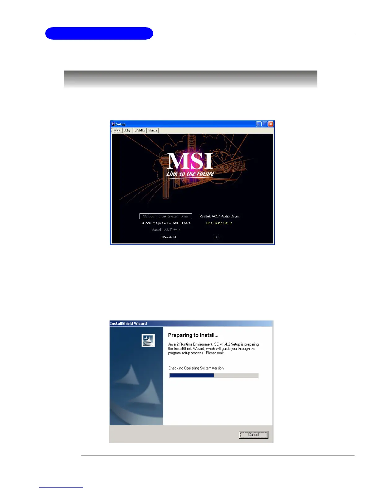 driver must be installed. Insert MSI driver CD into the computer’s CDROM drive and