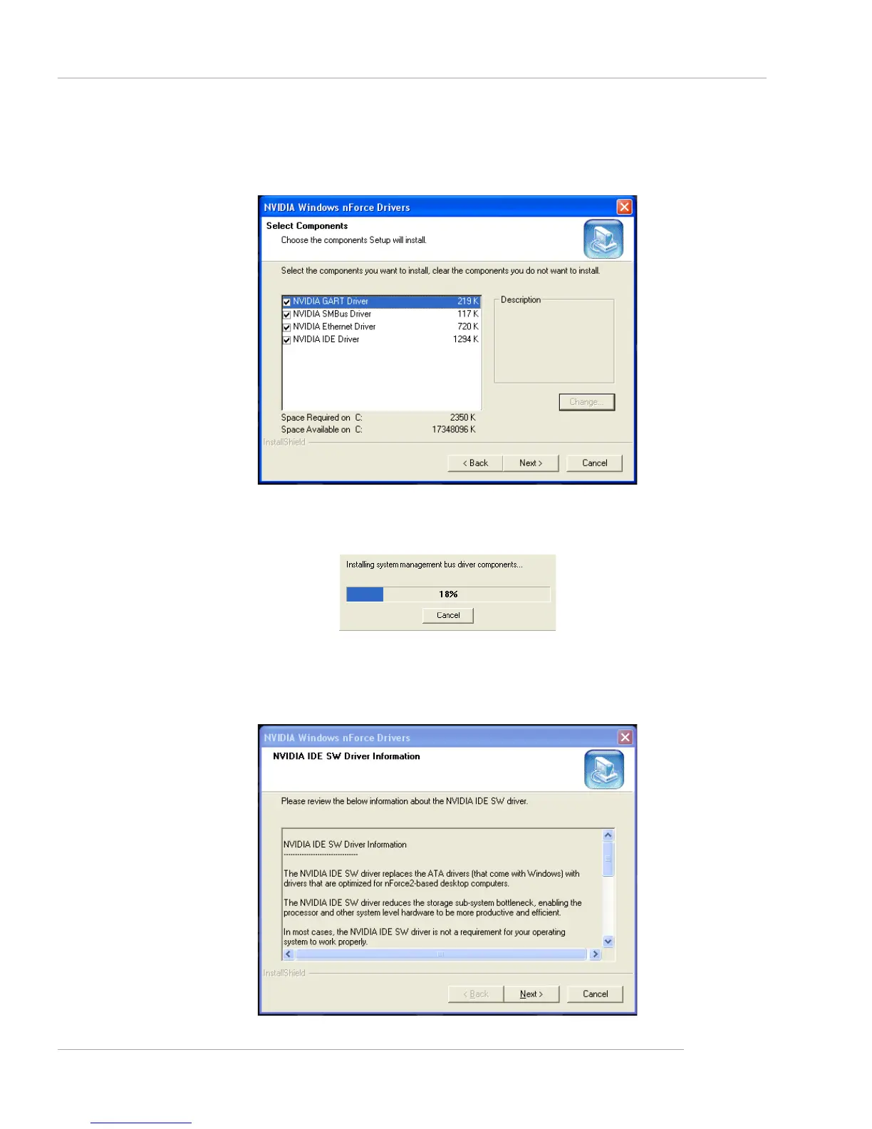 4. Then the following screen displays the information for the NVIDIA IDE SW Driver