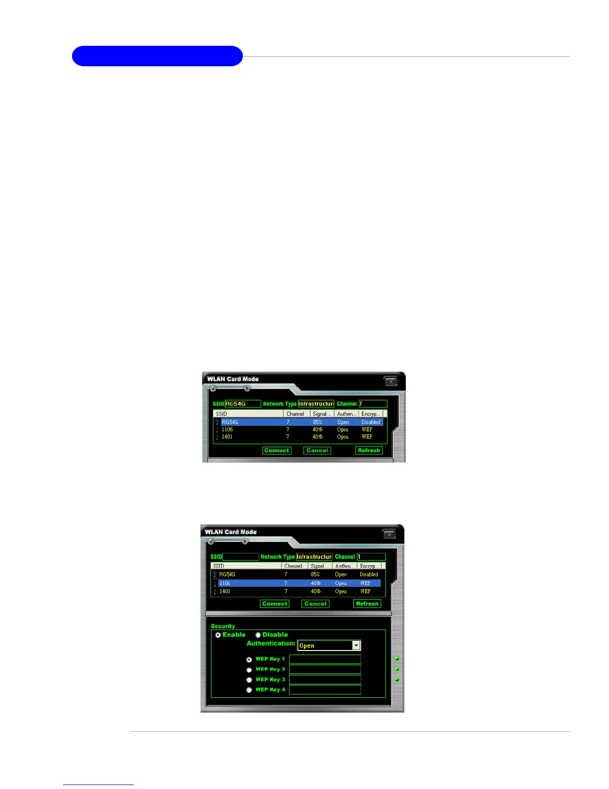 If the network you are selecting is encrypted (WEP shown in the Encryption column),