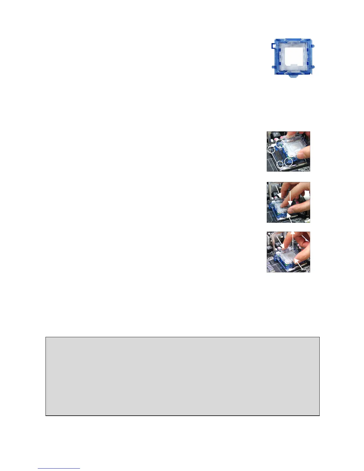 4. Whenever CPU is not installed, always protect your CPU socket pin with the plastic cap