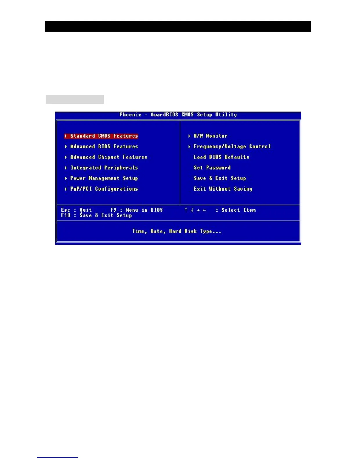 Cette fonction permet le paramétrage des éléments standard du BIOS.