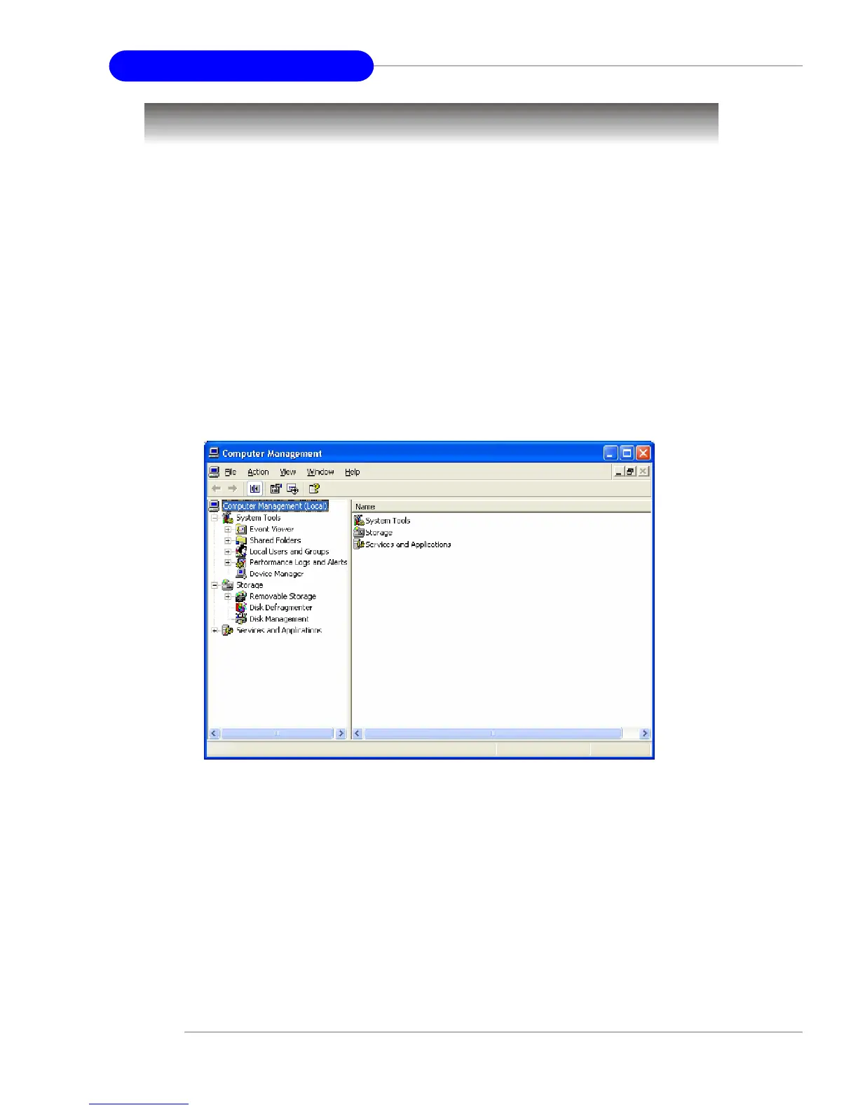 following screen will appear when Computer Management is started. Select Disk