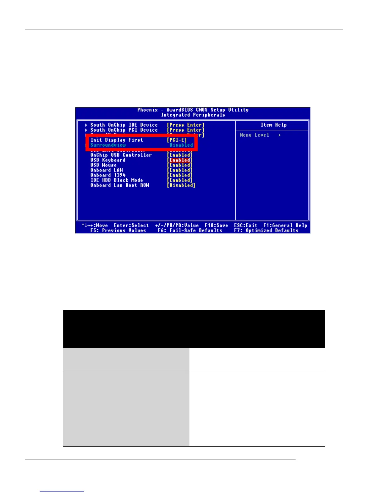 7. Use the arrow keys to navigate to Init Display First and set it to PCI-E.
