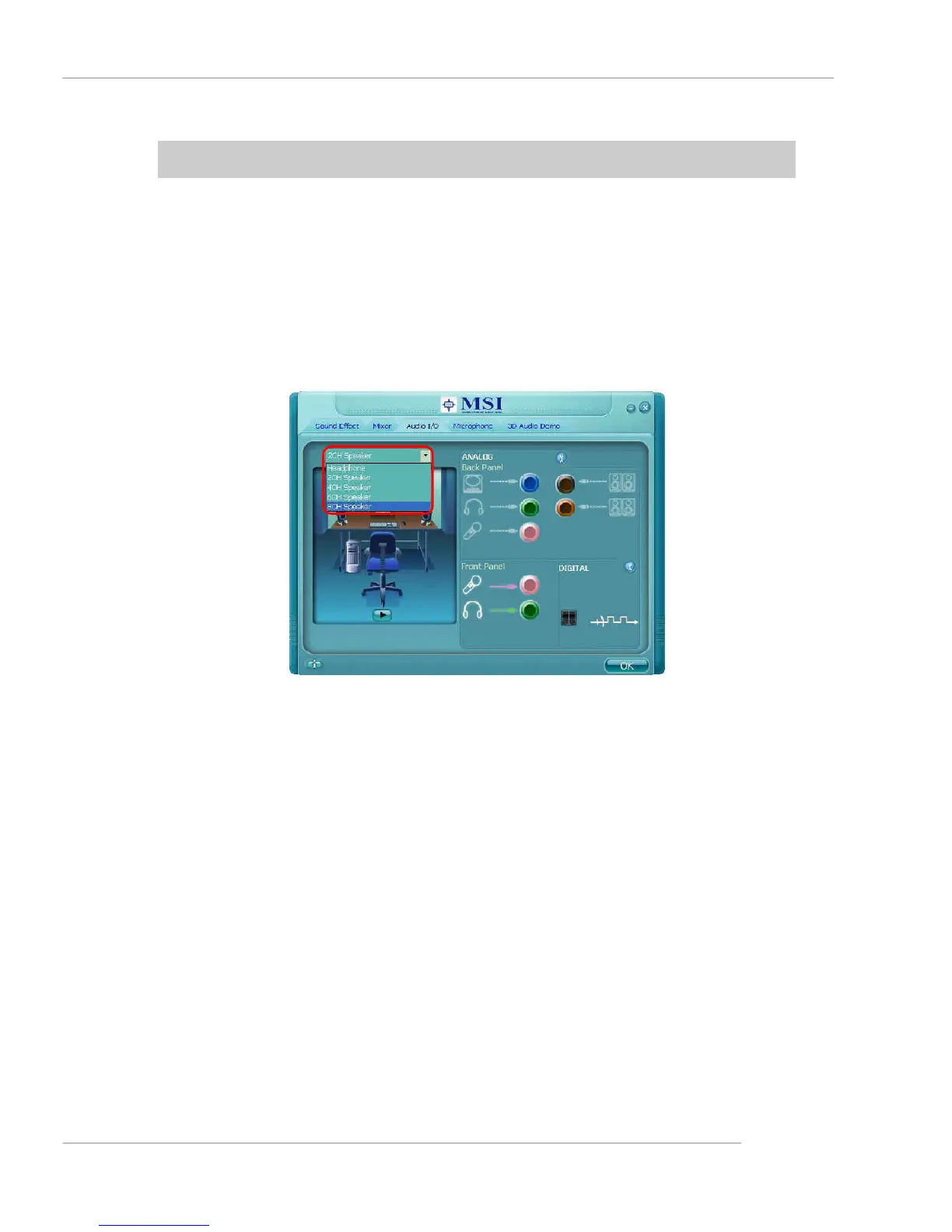 In this tab, you can easily configure your multi-channel audio function and speakers.