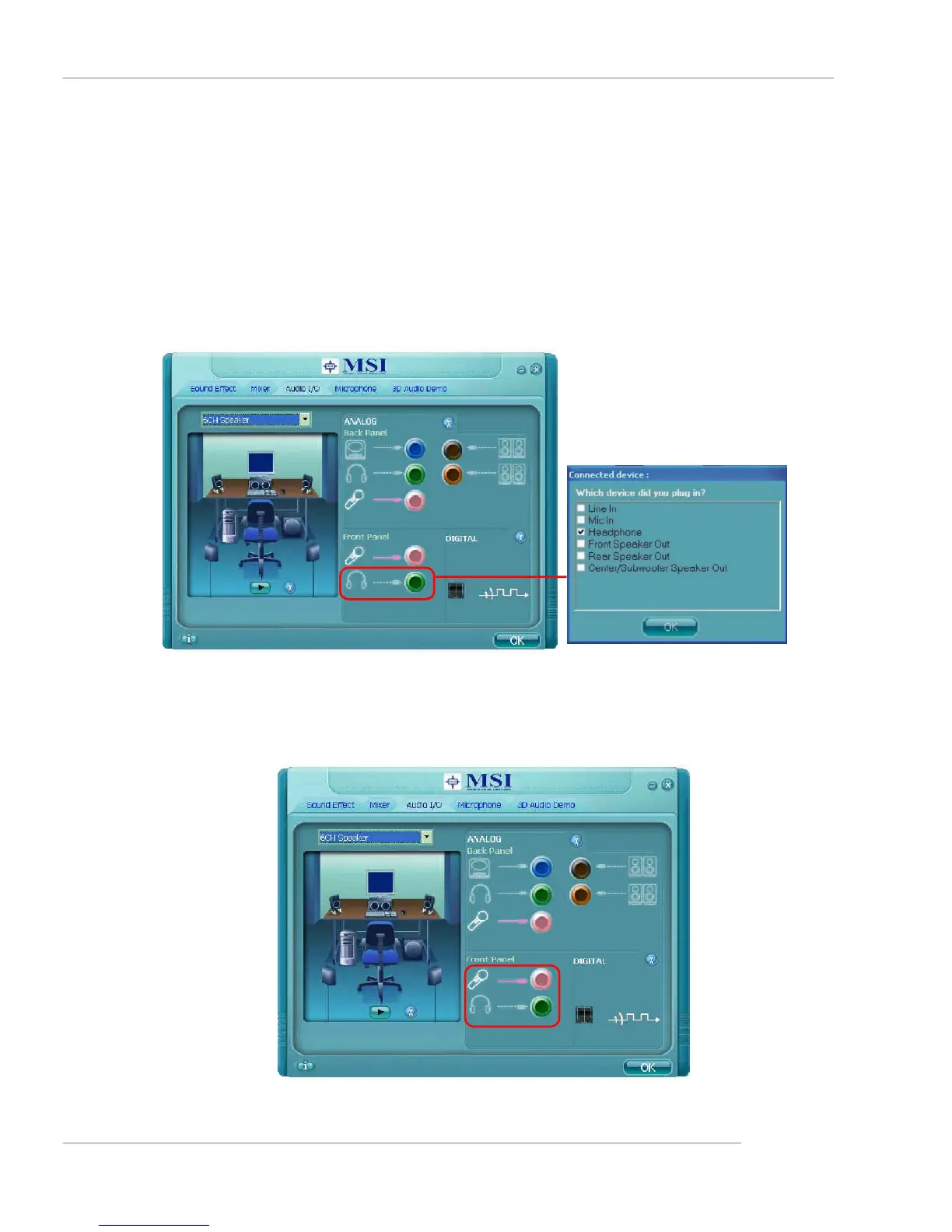 4. If you are using AC97 setting, both microphone and headphone on the front