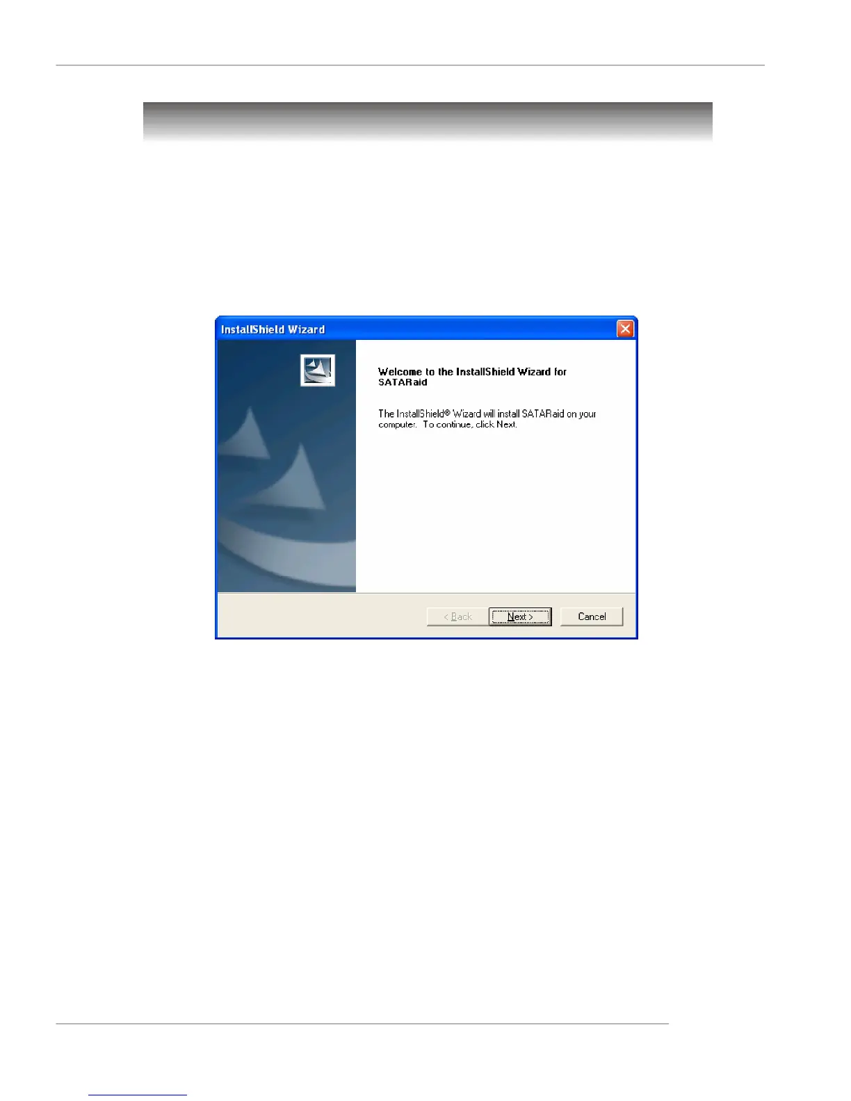 The following screen shots are taken from the installation of SATARaid.