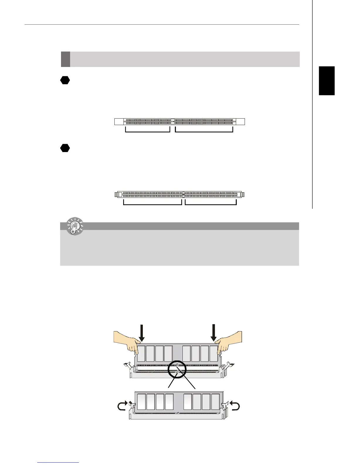 - To enable successful system boot-up, always insert the memory modules into the DIMM1 first.